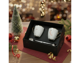 Zestaw dwóch kubków porcelanowych + 2 łyżeczki.