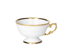 Filiżanka do herbaty Alaska Dzień łączy klasyczną formę z artystycznym wykończeniem. Jej szlachetna biel symbolizuje zjawisko dnia polarnego, a ręcznie malowane złotem elementy – brzegi oraz ucho – podkreślają luksusowy charakter porcelany.