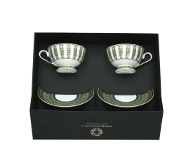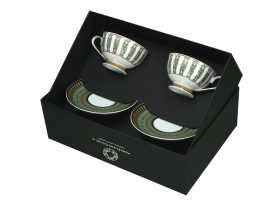 Zestaw dwóch filiżanek do herbaty w eleganckim opakowaniu.