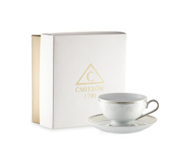 Ćmielów.Astra Marzenie Platynowe.Filiżanka porcelanowa do herbaty ze spodkiem.pojemność: 220 ml,średnica spodka: 14 cm,materiał: porcelana,kolor: kremowy, platynowy.