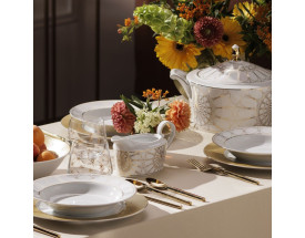 Owalny półmisek Jenny Solaris Gold H108 w pełnym złotym zdobieniu na kołnierzu dodaje szyku każdej uroczystości.
