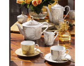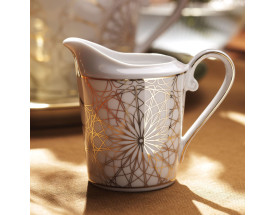 Mlecznik Jenny Solaris White H107 wyróżnia się delikatnością formy i lekkością. Geometryczny wzór i złote akcenty nadają mu wyjątkowego uroku, czyniąc z niego idealny dodatek do serwisu kawowego.
