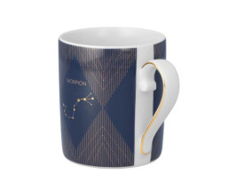 Kubek Jenny Zodiak Skorpion to porcelanowa manifestacja intensywności. Symbol Skorpiona otoczony jest ornamentem i złotymi detalami, które podkreślają jego głębię i magnetyzm.
