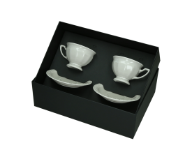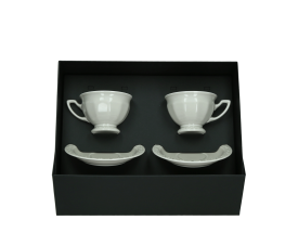 Zestaw dwóch filiżanek do kawy w eleganckim opakowaniu.