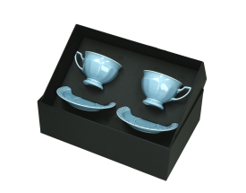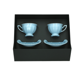 Zestaw dwóch filiżanek do kawy w eleganckim opakowaniu.