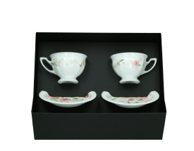 Zestaw dwóch filiżanek do kawy w eleganckim opakowaniu.