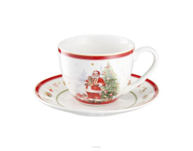 - 1 filiżanka z choinką i spodkiem ze wstążką