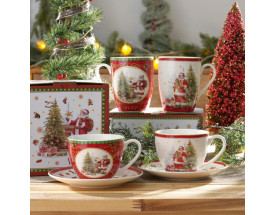 Komplet filiżanek CHRISTMAS TREE zawiera 2 różne wzory, zapakowane w pudełko ozdobne.