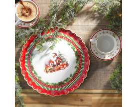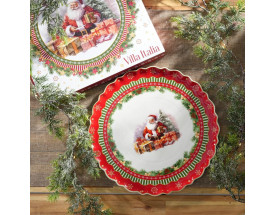 Villa Italia.Santa Claus.Talerz / półmisek porcelanowy.wymiary: średnica 33 cm, wysokość 1,8 cm,materiał: porcelana,kolory: czerwony, biały, zielony,złoty,do zmywarki.