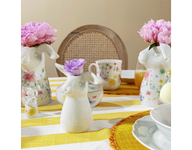 Piękny wazon z białej porcelany z kwiatem w kształcie zajączka. Idealny na stroik wielkanocny..